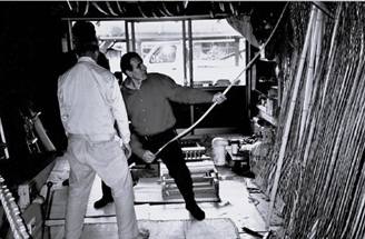 C'est Me Kuwabata, fabricant, artisan d'arc, archer émérite, qui me fit sentir comment notre " hara " doit se manifester pour que le Ki puisse s'exprimer au travers des pores de la peau et qu'on en devienne capable de ployer des arcs extrêmement puissants, sans force musculaire.