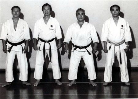 Kase O Sensei , assisté des Maîtres Enoeda, Myazaki et Shirai / Photo Shotokan Ryu